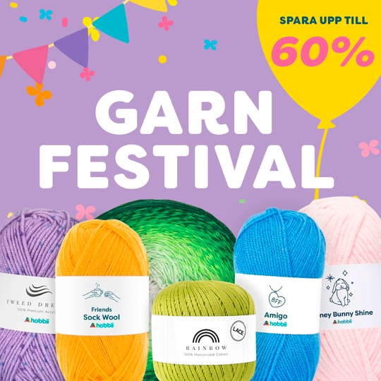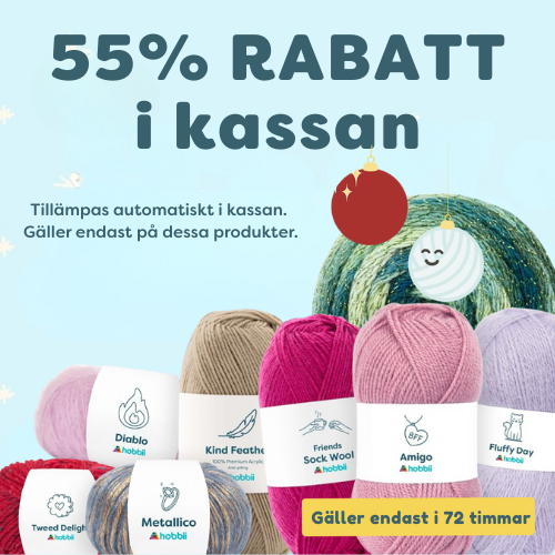 Hobbii.se är butiken för dig som har kreativa händer och älskar att sticka eller virka. Vi gör vårt bästa för att ta in nya och spännande produkter till priser som är överkomliga för alla. Vi har ett litet, men bra sortiment av billigt garn, stickor, virknålar, ekologiskt garn och diverse stickningstillbehör.