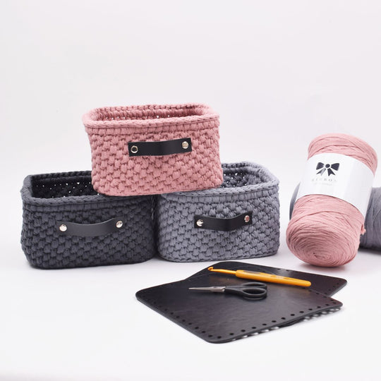 Förvaringskorg med läderbotten Rektangulär - Liten