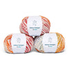 The range of colors varies from delicate to bright and to darker hues. The color transitions are mostly smooth and give a beautiful striped effect. Moreover, the mix with the white makes the color change unusual and fun when crocheting or knitting with it. This yarn is characterized by a nice stitch definition and it works up quickly. Hence, it is a good yarn choice for beginners and more experienced knitters and crocheters alike.