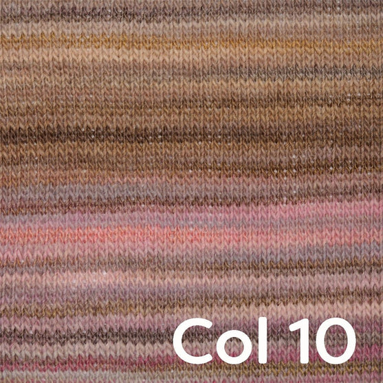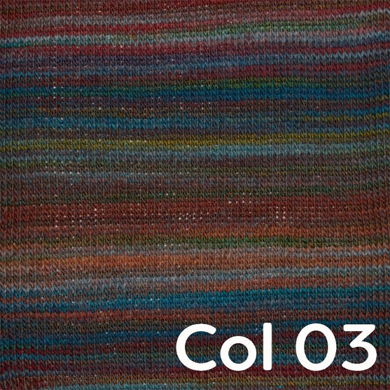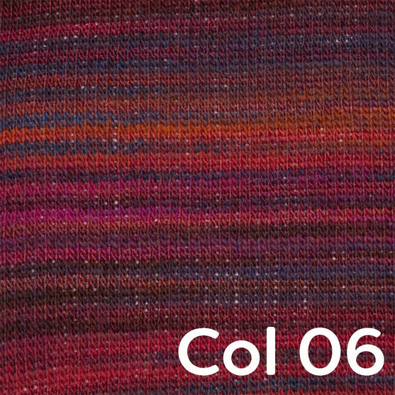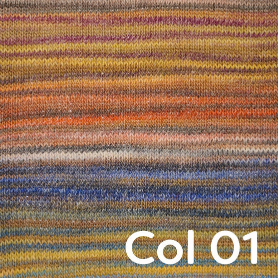 The yarn has a loosely spun structure with a slight variation in thickness and is easy to work with. As your project takes shape, you’ll see layer upon layer emerging in a surprising and fascinating play of beautiful color.