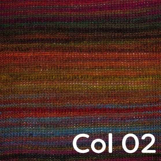 The South American wool used is both warm and soft. Therefore, Winter Glow is suitable for projects such as ponchos, jumpers and cardigans, beanies, mittens, and scarves…all with breathtaking colors to spice up any outfit. Otherwise, use it to create a unique blanket; a single skein goes a long way with its 700 meters.
