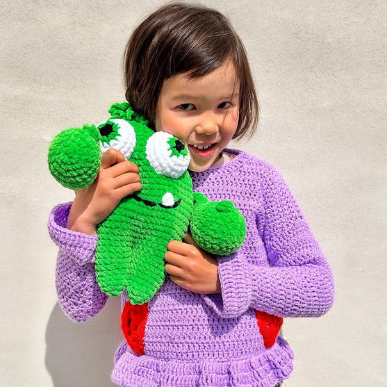 Fergus is the sweetest and craziest monster with big, curious eyes and lovely spiky hair. He is crocheted in the soft Honey Bunny from the top down. His cute, curly hair is made with loop stitches which means you choose how long you want his hair to be.