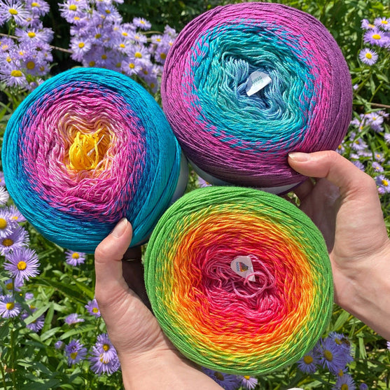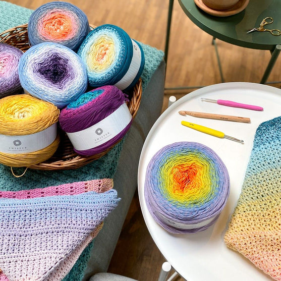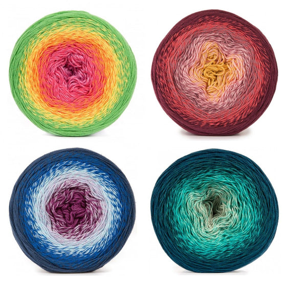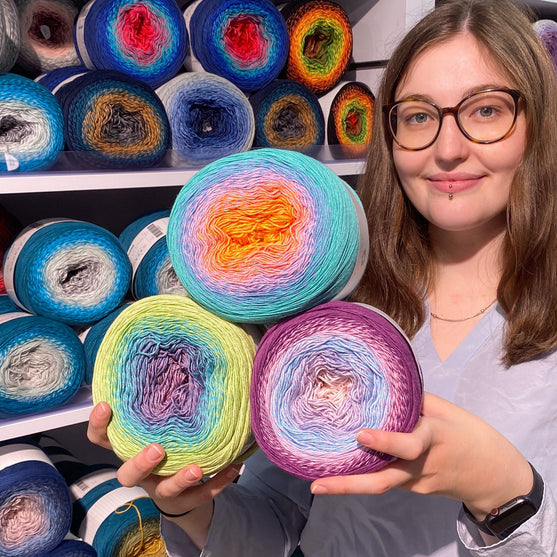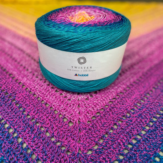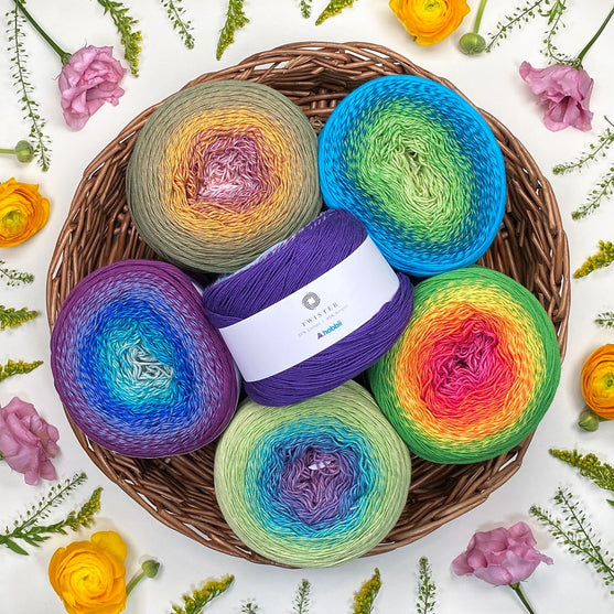 Vi har fallit pladask för Twister, ett riktigt mjukt cake-garn med fantastiska färgövergångar, som utvecklas till ett stort antal färgkombinationer.