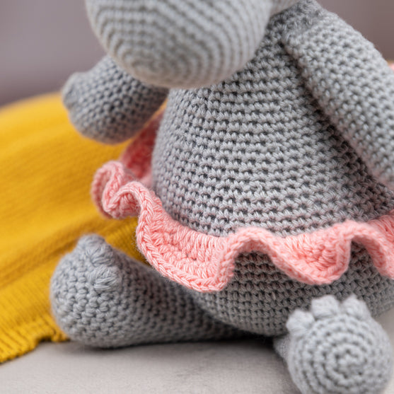 Hälsa på den allra sötaste noshörning Hollie. Hon är klädd i en fin liten kjol och har gjort sig extra fin med en rosett. Hon är den perfekta kram-vännen till en liten pojke eller flicka. Du önskas mycket nöje med att virka Noshörningen Hollie!