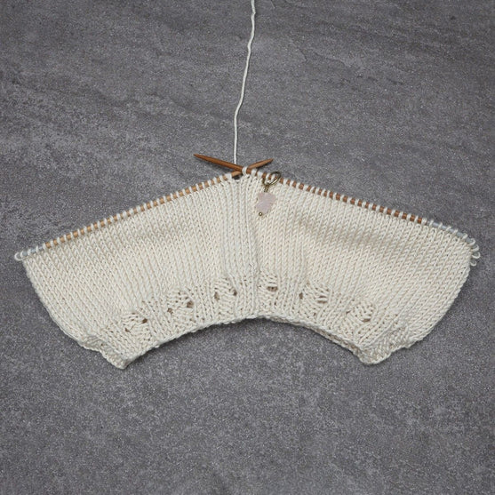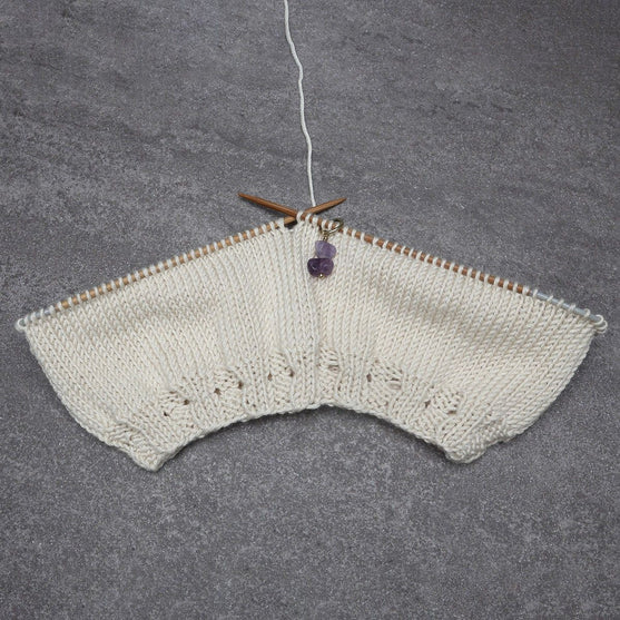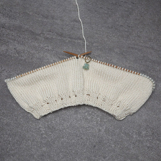 Handgjorda maskmarkörer med riktiga stenar. Använd dom för att markera var du ska göra minskningar och ökningar, var ett nytt mönster börjar och slutar eller bara för att hålla koll på vart varvet börjar.