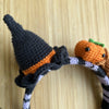 Ett diadem dekorerat med en häx-hatt, en söt pumpa och en härlig spindel. Först virkas överdraget till diademet, sedan de små söta amigurumi och slutligen sys de fast där du vill ha dem på diademet.