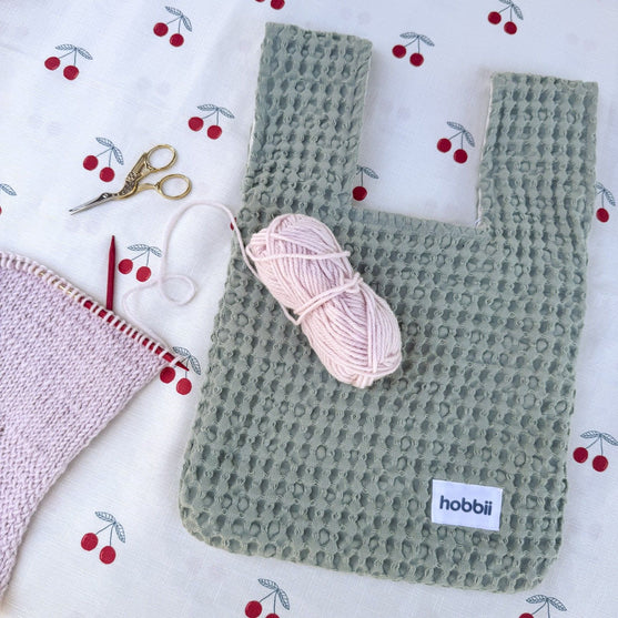 Denna Big Waffle Wrist Bag har en tidlös design och är tillverkad av ren ekologisk bomull på ett ansvarsfullt sätt. Den mjuka ytan på väskan gör den bekväm att bära runt handleden och är skonsam mot ditt projekt.